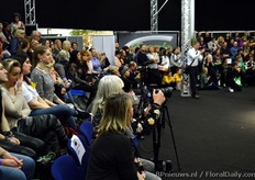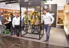 Frank de Greef of Fleurizon holding the Ranunculus. In the back the Phormium that attracted the attention of many of the visitors.