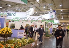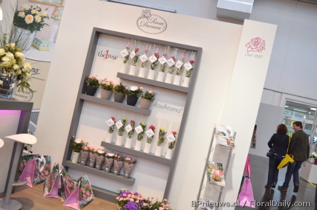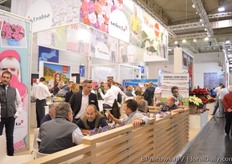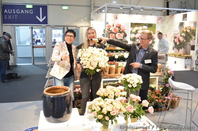 The team of Group of Companies from Russias visiting the show. This company is mainly specialized in the production of vegetables, but started to cooperate with German breeder Kordes and Danish pot rose grower RosaDanica to establish a greenhouse for pot rose production. Since July they have put the first pot roses (Kordana's) on the Russian market and they are pleased with the demand.