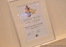 The 2 brothers Robert and Jaap-Jan Uittenbogaard from JUB Holland with there award for best grower of Cutflowers in whole Europe!