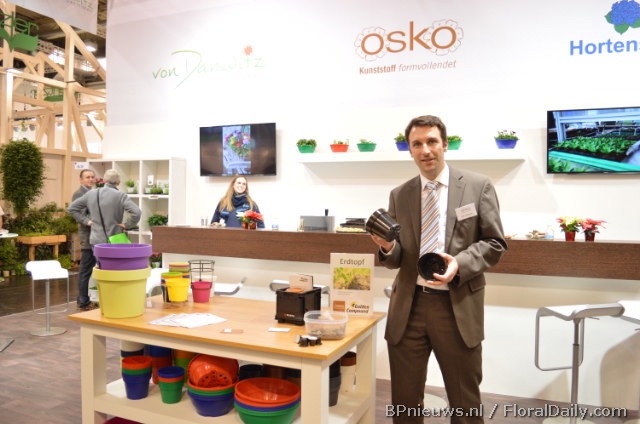 Krimpen, at the fair in particular presenting the ways in which the company is focussing on recyling plastic materials. And of course showing off new items in the product range, amongst which this new line of mat pots