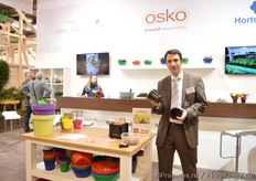 Ronald Vreugdenhil of Pöppelmann presenting the plant pots made from PCR, wich are 100 per cent recyclable, thus ensuring a closed material cycle.