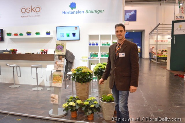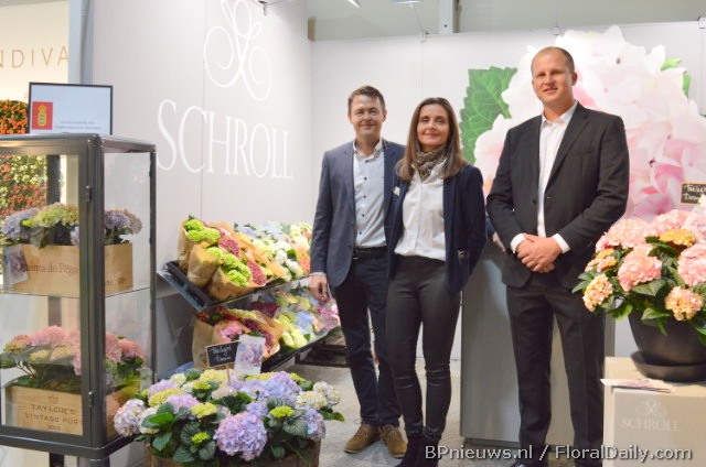 Soren Schroll, Mriolla Dolleris Schroll and Sergiy Petrenko of Schroll promoting Twilight Dream (on the left). This Danish hydrangea breeder used to produce hydrangeas in Portugal and ship them to Denmark where they would finish them or sell them directly to other growers. From this year onwards, they will also finish a part of their hydrangeas in Portugal and send them directly to consumers.