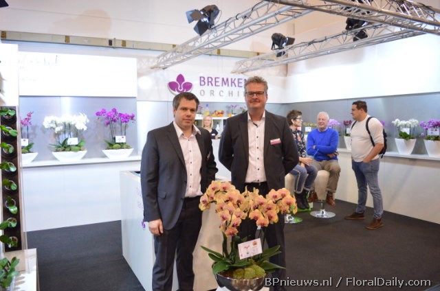 Friedrich von Fregman and ANtoine Hoogenboom of Bock Bio Science presenting their phalaenopsis and hellebore varieties.