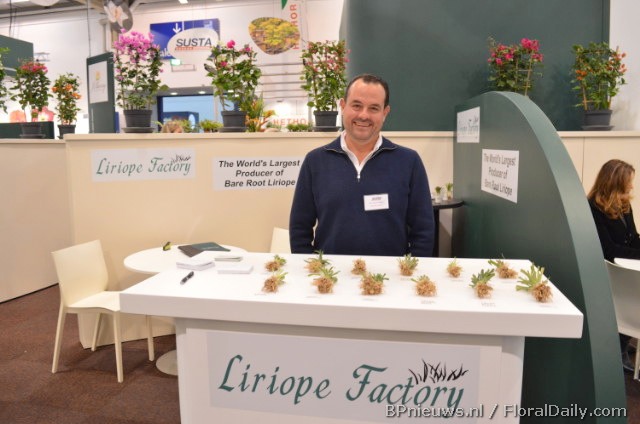 Manfred Robert of Liriope Factory. This US company supplies bare root Lirope mainly to USA and Europe. In both continents, the demand is increasing annually. According to Robert, the demand in Europe increases around 10 percent a year and in the US around 20 percent. Currently, Liriope Factory has 18 varities of Liriope in their assortment.