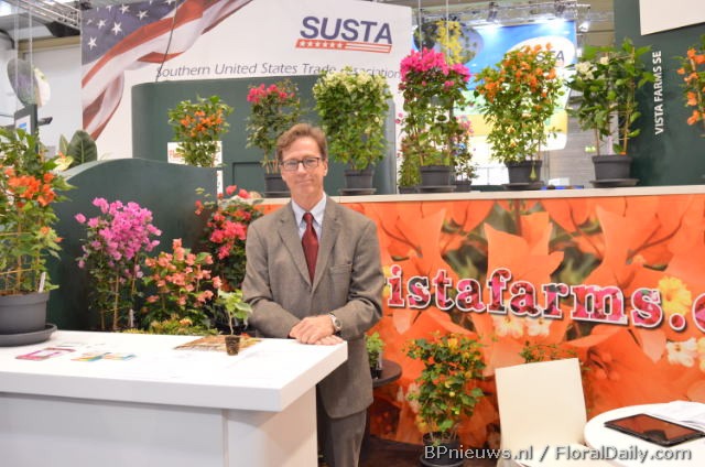 Jerome O'Neill of Vista Farms, a Puerto Rico grower that cultivates a variety of Bougainvillea, Hibiscus, and Ixora young plants as a wholesale, propagation-only nursery. At the IPM Essen O'Neill was showcasing the Bougainvillea varieties, of which he has seen the demand growing over the last years.