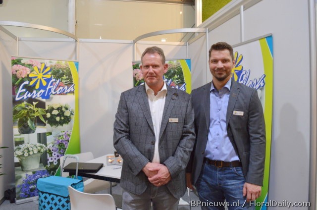 Leif Mortensen and Mikael Pedersen of Euroflora. They export flowers and plants from Denmark to other European countries, mainly Germany. According to Mortensen, the Germans are optimistic and they feel it in the number of exports.