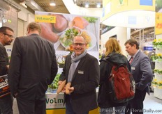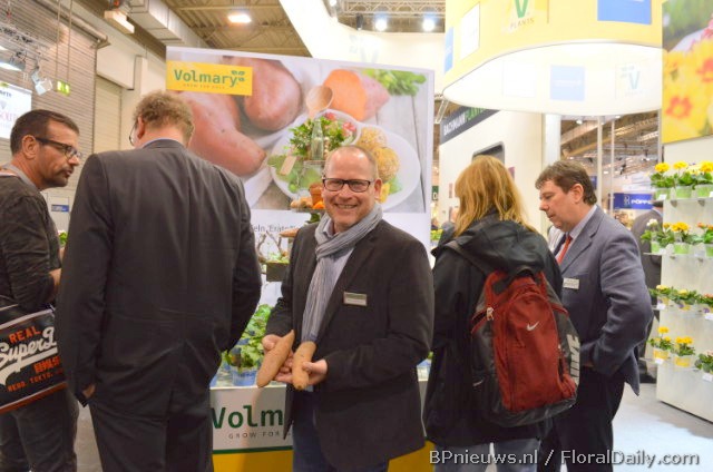 Markus Falkenback of Volmary holding the Sweet potato that is being supplied to the professional and hobby grower. According to Falkenback, the market for sweet potato is developing and increasing more retailers are putting it in the shelves.