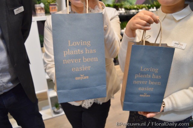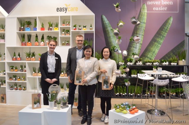 The team of Easycare presenting the gift packaging. Their aim is to supply consumer friendly long lasting plants and make them attractive with dexoration.