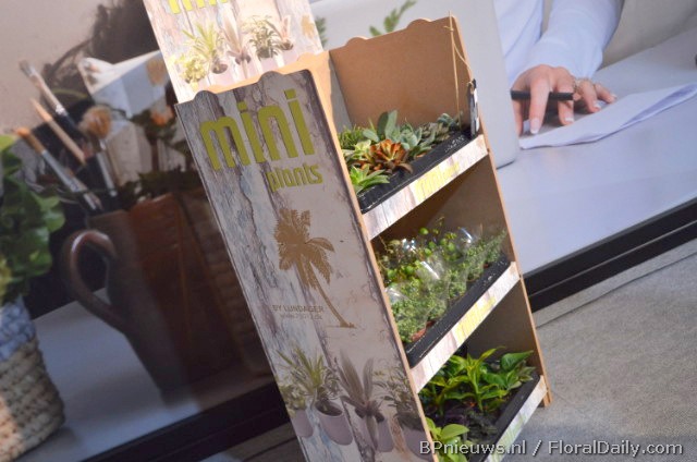Mini Plants concept of Lundager. This Danish grower developed a more environmental display that can produced and supplied quickly. Several chains in Europe are already using it.