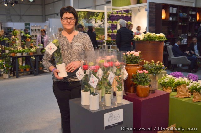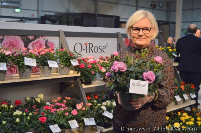 Helle Graff of Graff Kristensen holding the Q-iRose of Q-genetics, a new breeder of miniature roses.