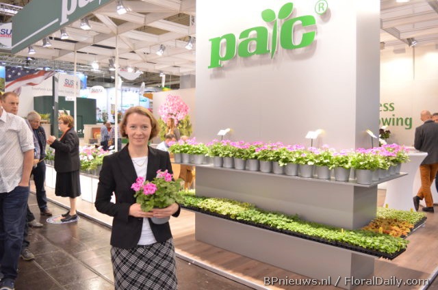 "Antonia Feindura of ELsner PAC presenting the new pelargonium Pinkerbel. It is a uniform growing pelargoniu, with a pink and light star flowers. This year, she started to supply this pelargonium and the reactions and interest is good. "Growers know our Candy flowers and know how to produce it. This product has the same growing habits."