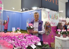 Jan Klusman of Klusmann of Klusmann Blumenvertriep holding the Promenea. This variety was introduced two years ago and is doing very well. Currently, it is being sold for easter.