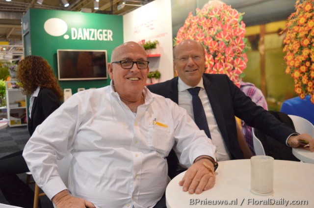Micha Danziger of Danziger with Toon van dfer Klugt of Klugt Quality plants, who was visiting the show.