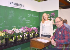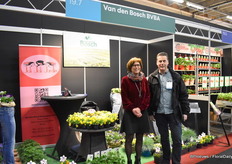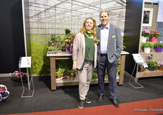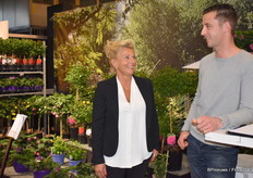 Ria Greta Nicole van van den Bosch met Marco Stolze van KPS Sales. Van den Bosch kweekt verschillende tuinplanten en op het moment zijn dat violen.