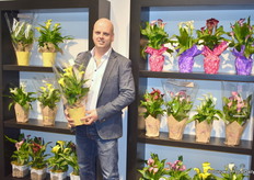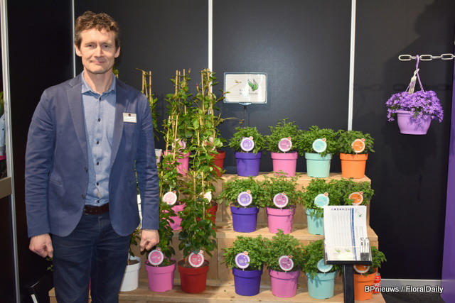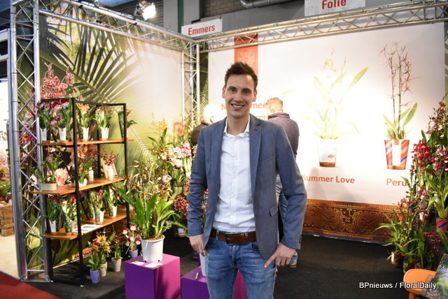 En nog een FloraHolland sales manager, Danny den Breejen, hier in het standje van potplantenkwekerij Joy Plant, de kwekerij van Patrick van Paassen