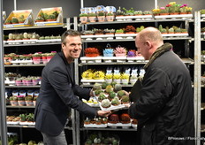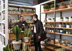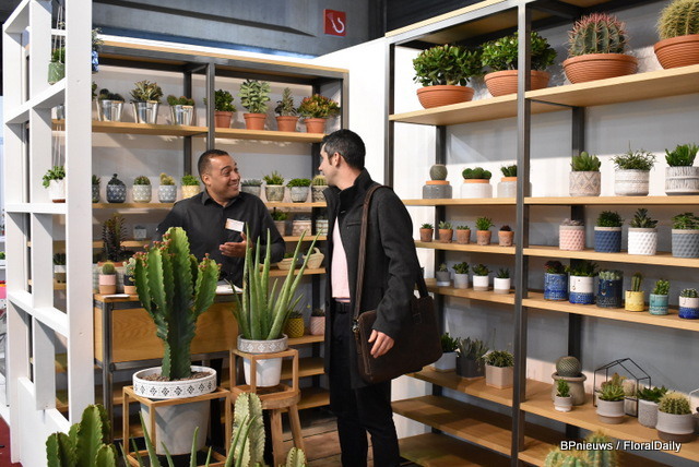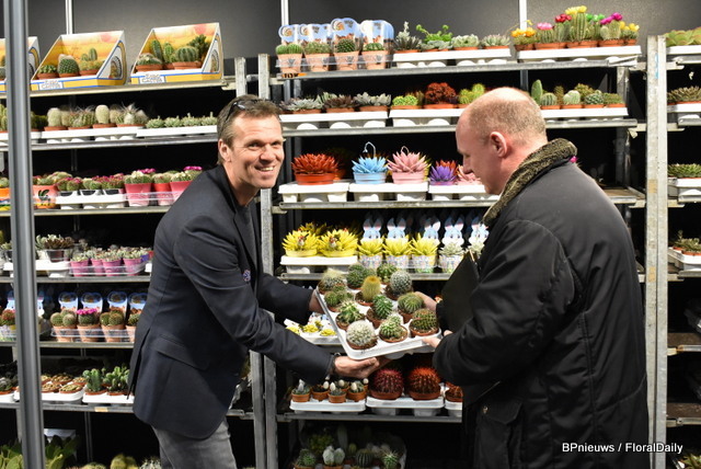 "Paul Splinter van Eurostart met Stanley Greeven van Lemkens. Eurostar kweekt cactus en succulenten op 2ha en de laatste 3 jaar heeft Paul de vraag zien stijgen. "Het gaat erg goed, vooral de kleine maatjes."