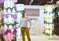 Robbin Paasen van Inca Orchids kweekt exclusieve orchideeën en heeft begin dit jaar potcovers geïntroduceerd. Op de achtergrond de Summer Love en Peru.