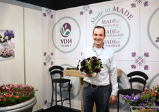 Arie van der Harg van VDH plant met de Lightning Sky, een nieuwe variëteit vanv veredelaar Selecta one. Naast petunias kweekt VDH Plant meer perkgoed, ongeveer 10 soorten.