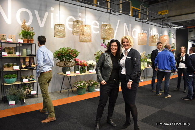 Anne-Marie Looije en Caroline Janknegt van FloraHolland presenteren de Noviteitenhoek.
