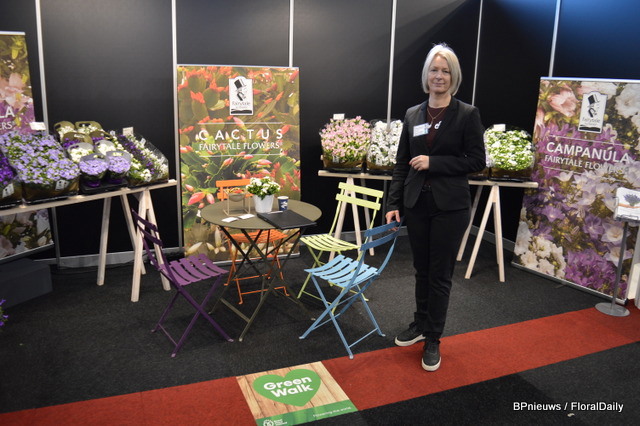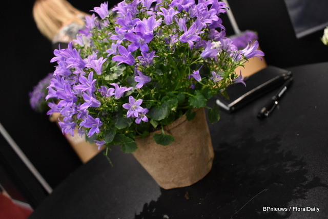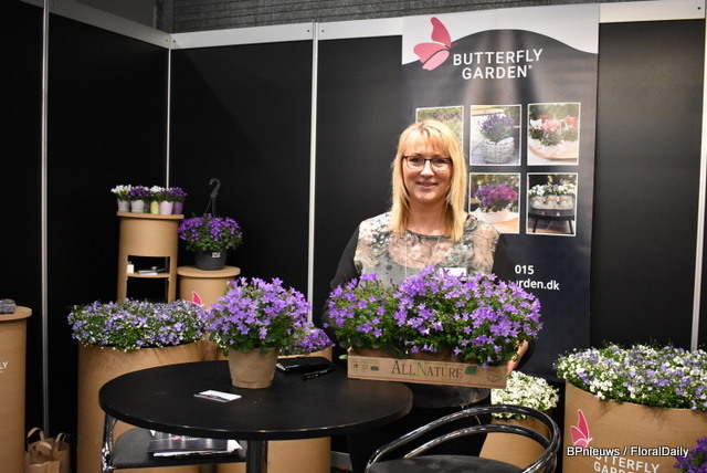 Annie Agger van Butterfly Garden presenteert de campanula's in een nieuwe AllNature verpakking.
