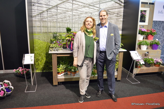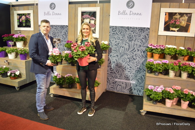 Don Bruinen en Nathalie v/d Vlist van kwekerij Apartus, die verschillende noviteiten te melden heeft: verschillende nieuwe variëteiten in de Bella Donna lijn, met nog meer knoppen, en ...