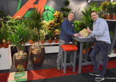 De stand van v/d Dool Plant Bv waar Menno v/d Dool een praatje maakte met Michel Verbeek van Royal Flora Holland.