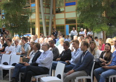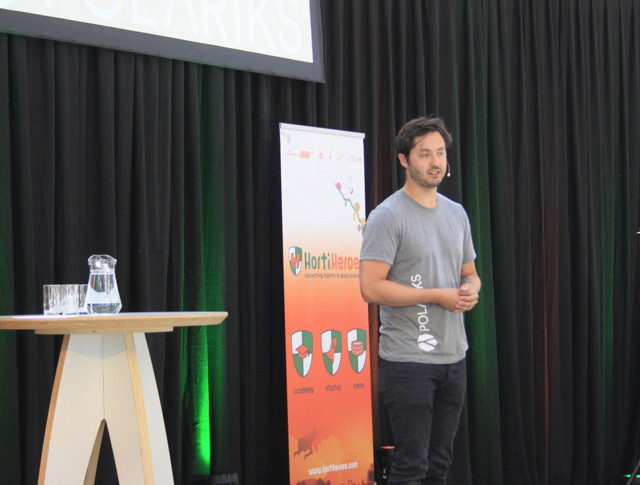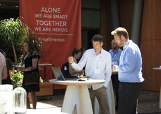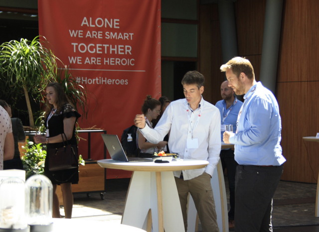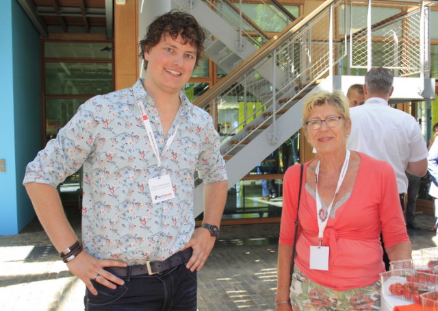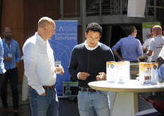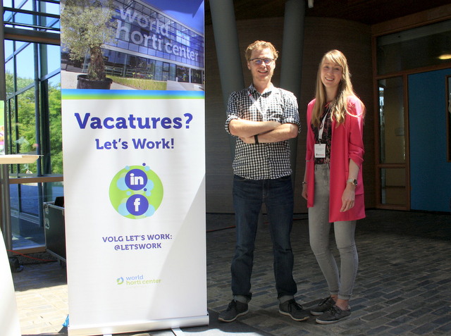 Diverse bedrijven hadden een stand. Hier Tom van Velzen en Marissa Kloppers van Let's Work - World Horti Center.