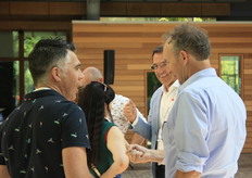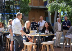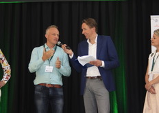 Een andere deelnemer van het programma: Jeroen Steenbergen van Deliflor, hier in gesprek met Wil van Kester.
