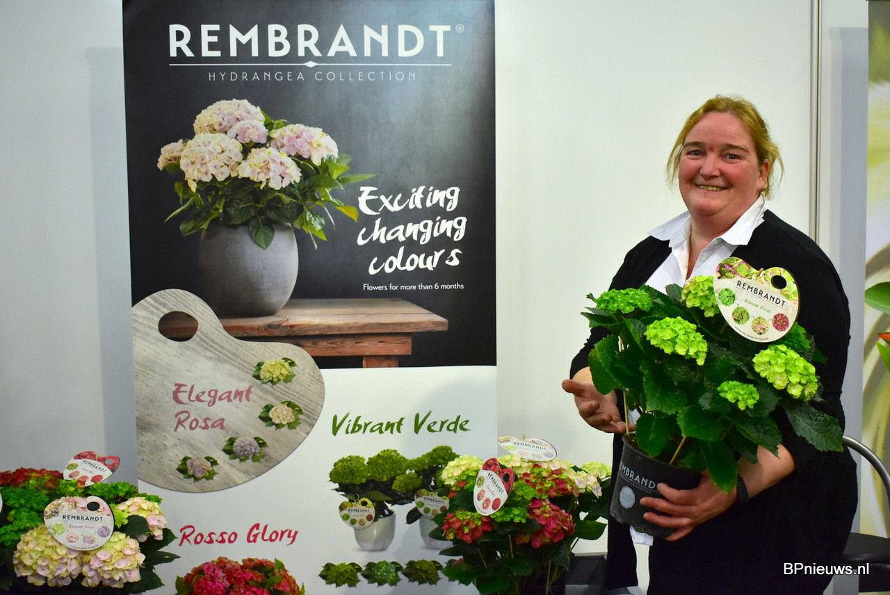 Nicole Scheffers van Meeslouwer met een mooie hortensia uit hun Rembrand serie.