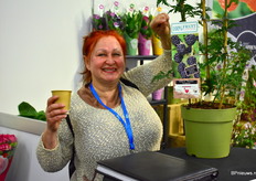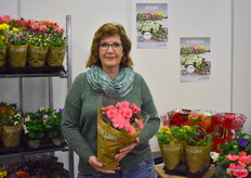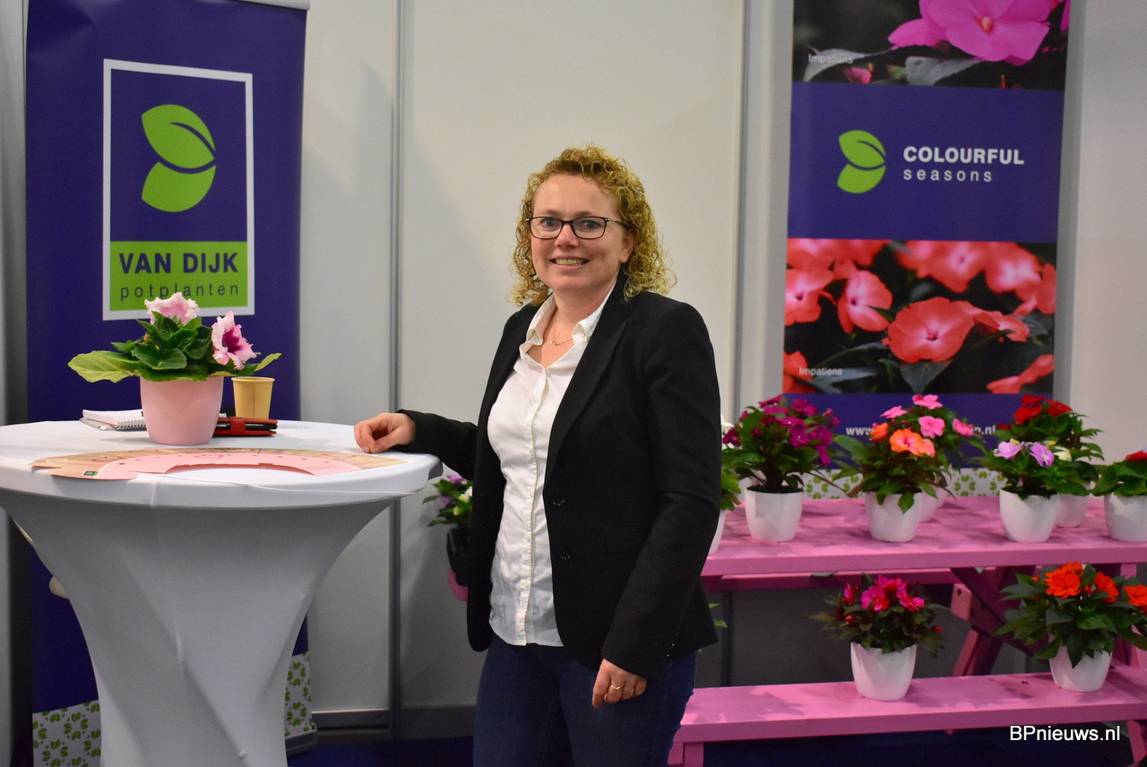 Kitty van Dijk van Van Dijk Potplanten stond op de beurs met hun Gloxinia's, Begonia's en hun Vleitige Liesje.