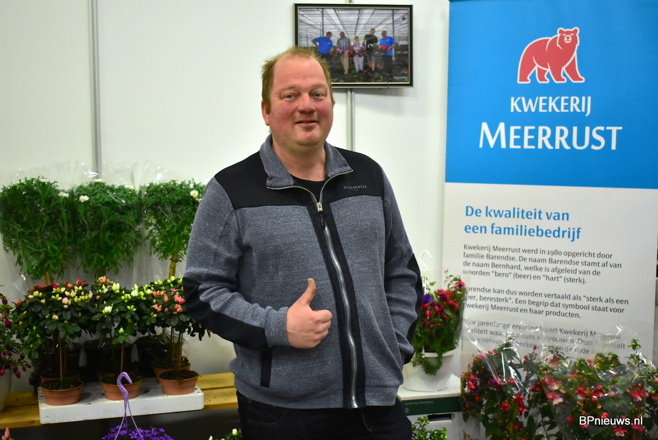 Tom Barendsen van Kwekerij Meerrust liet de leverbare producten zien op de beurs waaronder zijn Azalea's en Stamfuxia's.