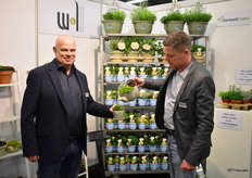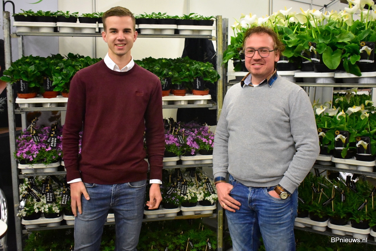 Jurre van Veen en Teunis Versteeg van De Liesvelden Kwekerij met onder anderen hun Zantedeschia Aethiopica en hun Phloxy Subulata Early Spring.