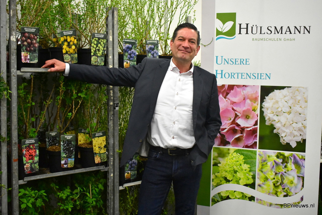 Hans Vlekke van Sales Managment Royal Flora Holland stond op de beurs voor zijn kwekers waaronder de Duitse kweker Hülsmann.