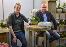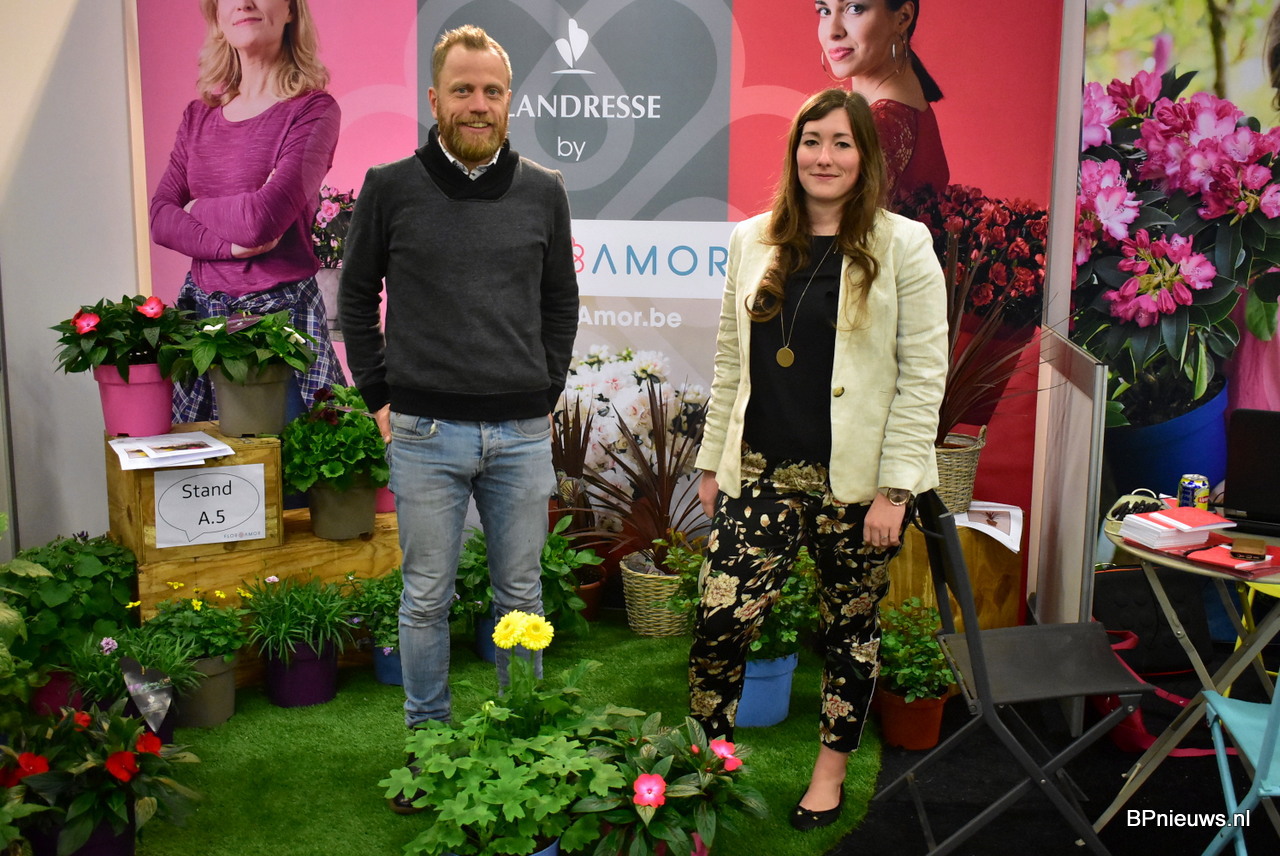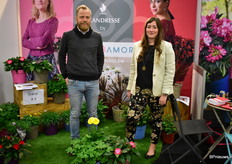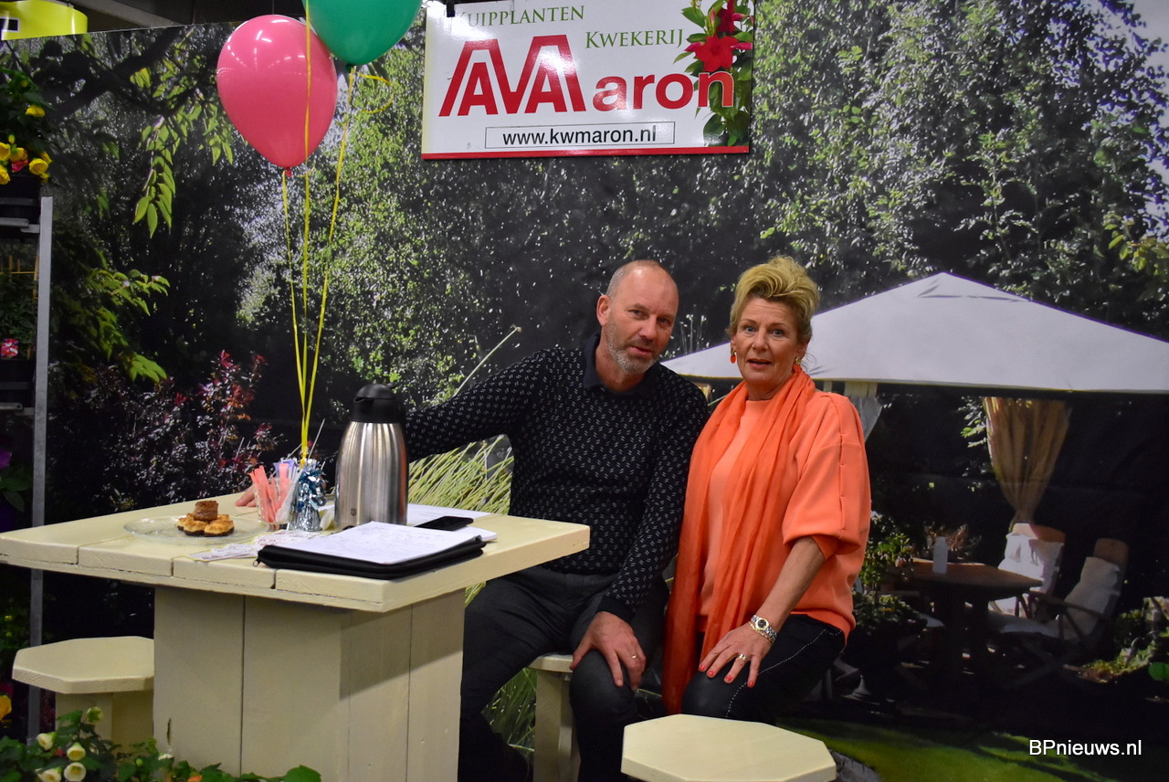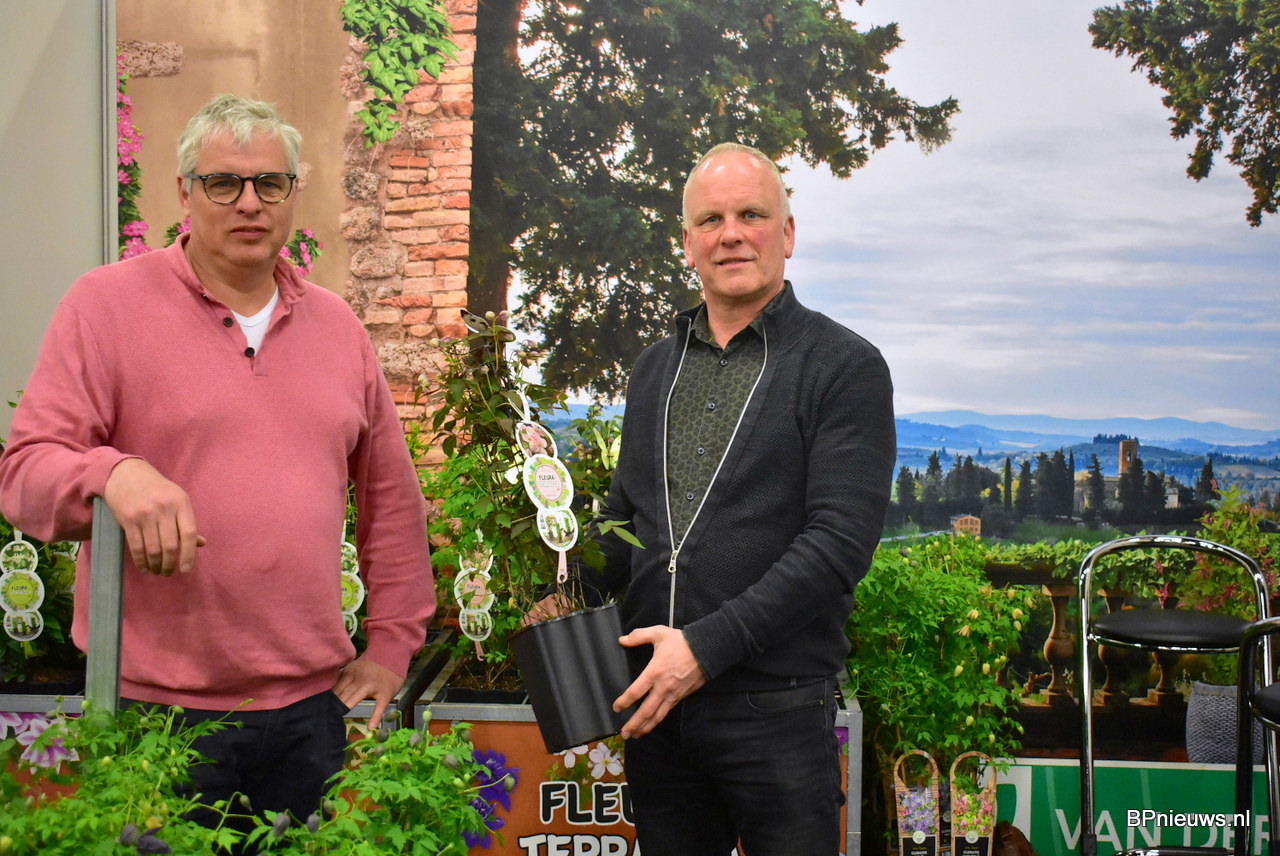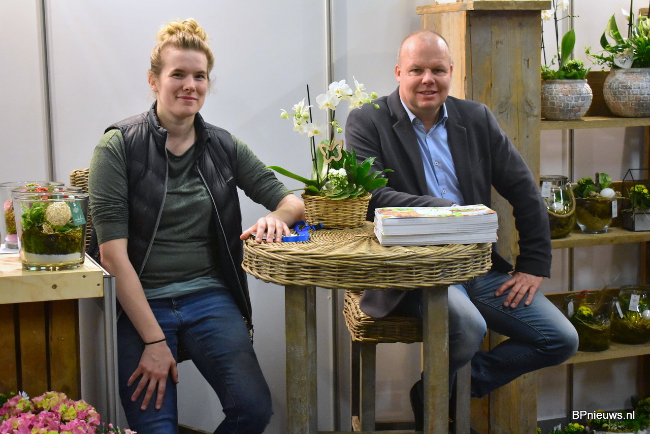 Christoph Steven samen met Bianca Lievens. Beide van Flor Amor en gaven extra aandacht aan hun terrasplanten potmaat 25. Het is een grote plant waar je direct volume, kleur en min of meer kant en klaar versierd terras door hebt.