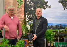 De mannen van de kwekerij Van der Starre Taco van der Heijden en Arjan Scholten. Ze waren tevreden over de beurs en al helemaal over de animo voor hun FleuraTerraza