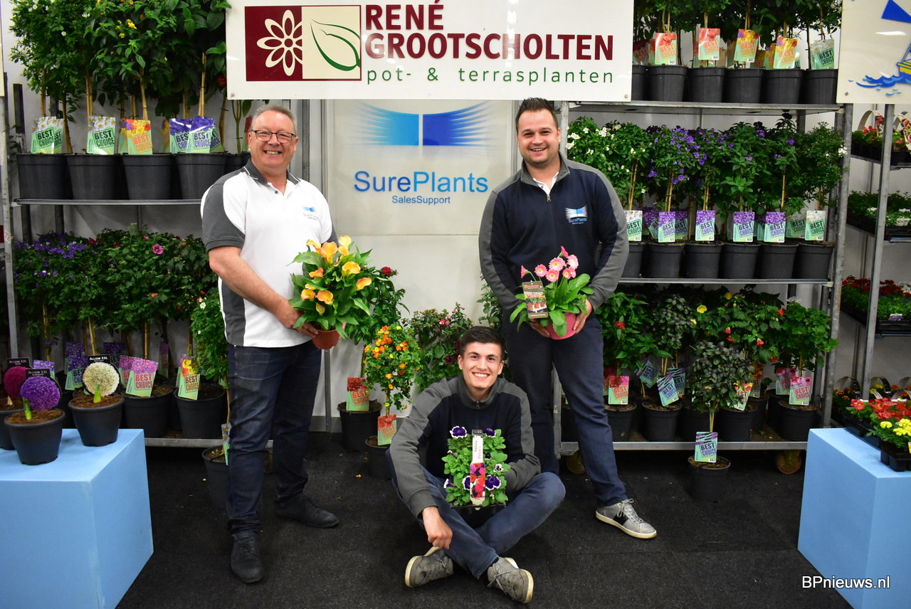 Sure Plants stond ook weer paraat voor hun kwekers waaronder Rene Grootscholten, we zien hier Fret en Jack Beekhuizen en in het midden in een mooie kleermakerszit Luuk Donker