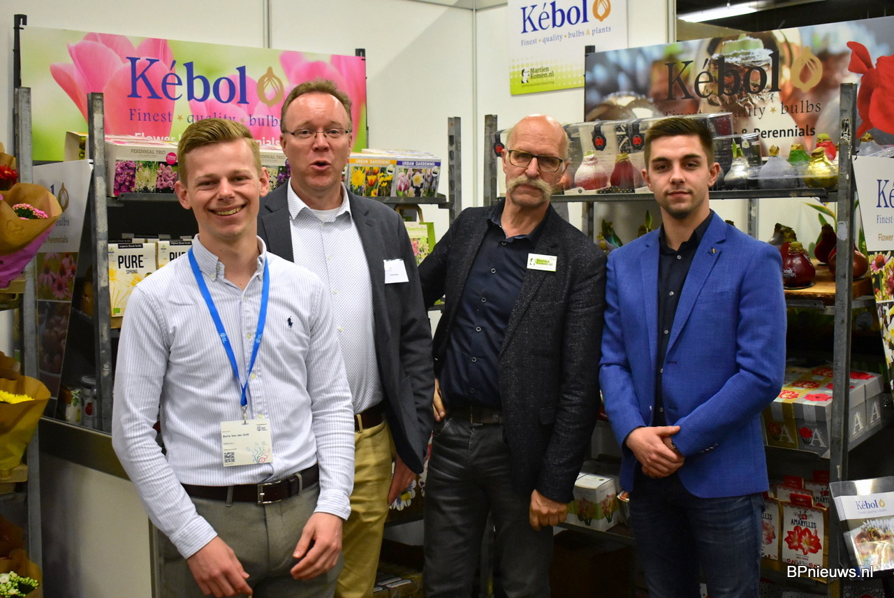 The Top off the Springfair, dat zie je meteen. Boris van der Drift, Gertjan Rigter en Joey Hufman van Kébol samen met hun verkoper Martien Komen.