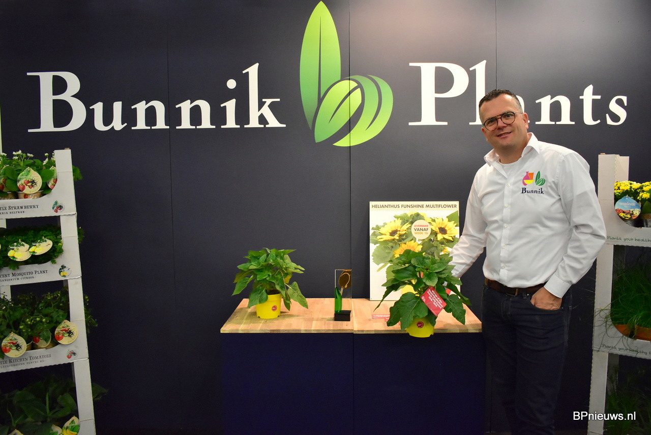Jan Bier van Bunnik Plants hier met zijn Helianthus en ook de glazentulp die ze hiervoor hebben ontvangen. Hij is vanaf week 16 weer leverbaar!
