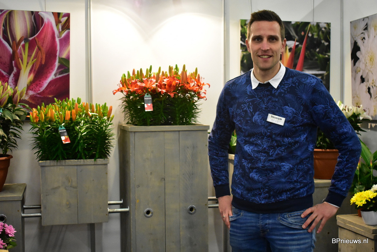 Michel van Kester van Van Schie Potlelies stond ook op de beurs met zijn lelies.