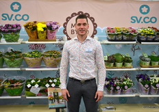 Mike Broch van SV.CO stond op de beurs met onder anderen hun pot lisianthus Lisi Lova die vanaf heden weer leverbaar is.