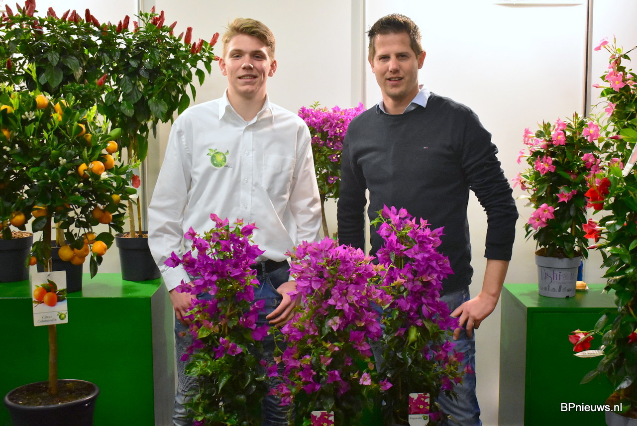 Milan van Adrichem en Bas Berk van RM Plants bij hun Bougainvillea.