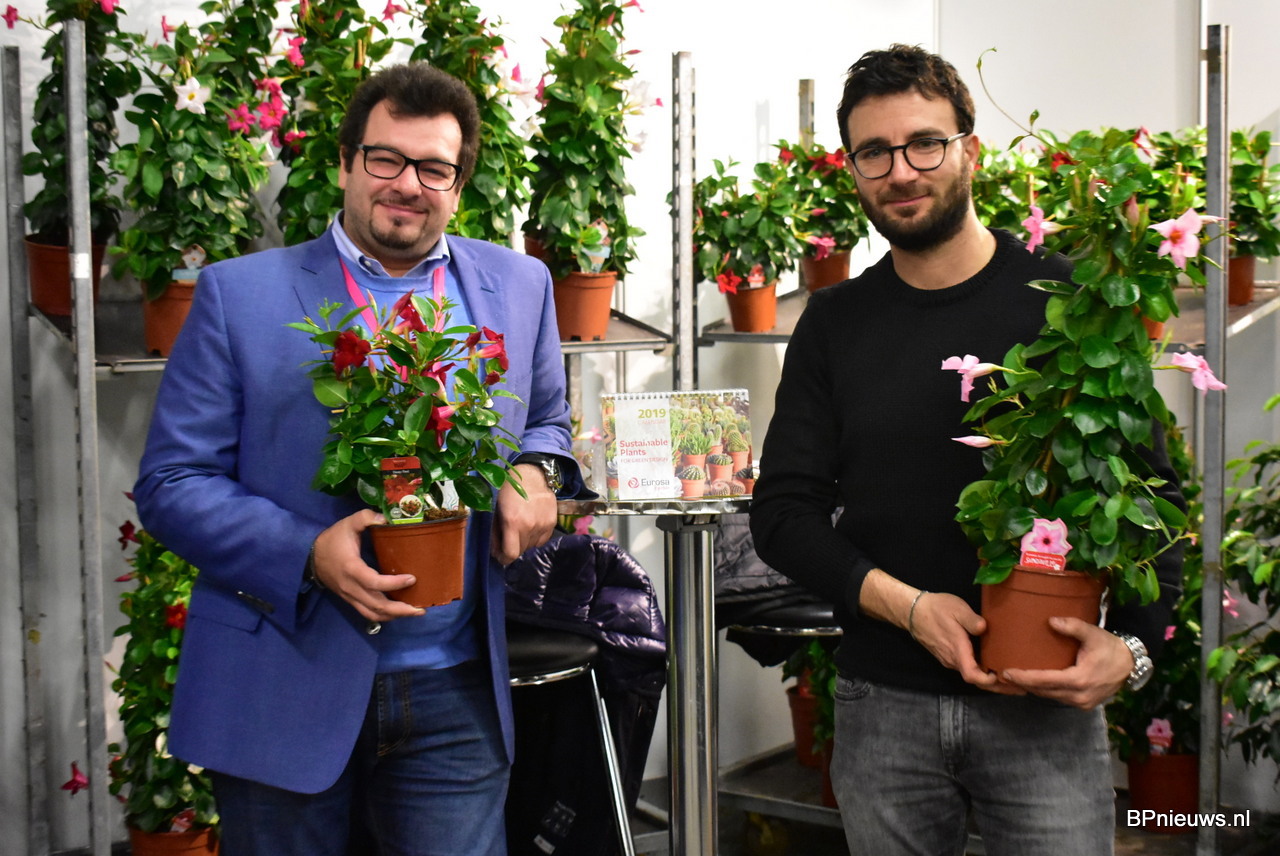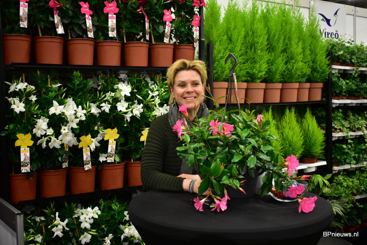 Gertine Heemskerk van kwekerij Harold Heemskerk stond er met verschillende kleuren van hun Mandeville.
