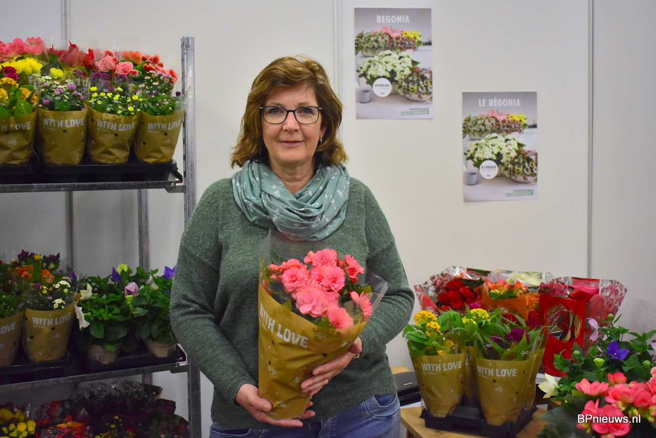 Jolanda Nieuwluizen met een Begonia Coral Pink van de Plantenkwekerij Nieuwluizen.