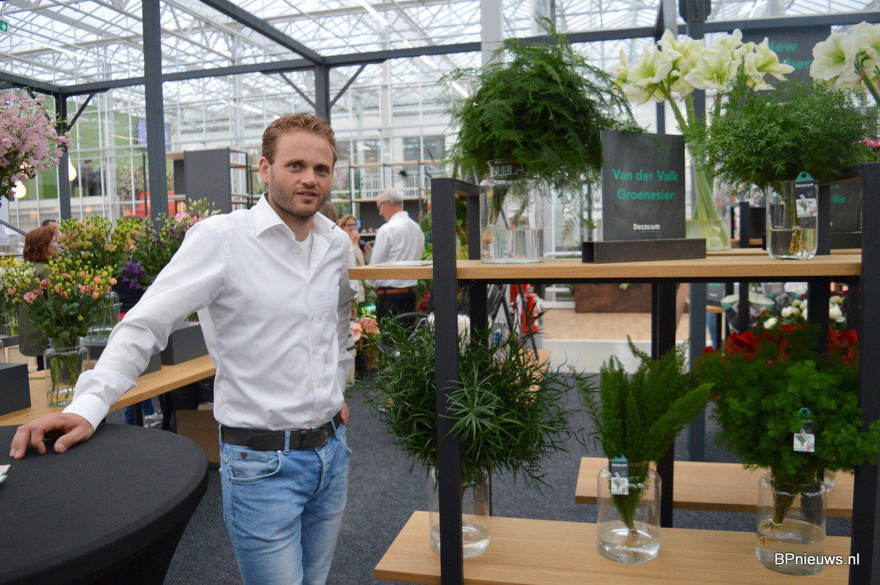 Bart van der Valk van Van der Valk Groenesier. Hij teelt 6 soorten asperagus in een 4.5ha kas in Pijnacker.