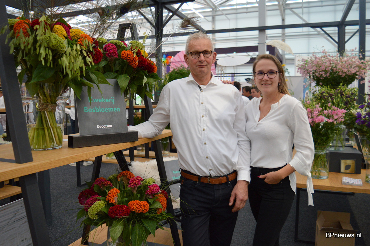Koos Bos en Patricia Schoenmaker van Kwekerij Bosbloemen. Sinds 2 maanden is deze celosia lid van Decorum. In 's Gravenzande worden de celosias op 3ha gekweekt.