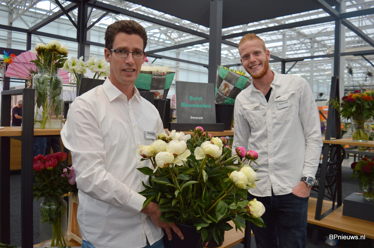 Menno Boots en Gijs Hoedjes van Borst Bloembollen. Ze zitten hoofdzakelijk in de tulpen en plukken er 30-35 miljoen per jaar. Sinds dit jaar doet dit West Frieslandse bedrijf er voor het eers ook pioenen bij, dit zijn er rond de 150.000 per jaar.