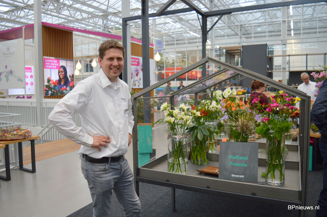Erik Hofland van Hofland Freesia kweekt jaarrond 14 freesia rassen in 7 kleuren in een 4.9ha kas in Maasdijk.