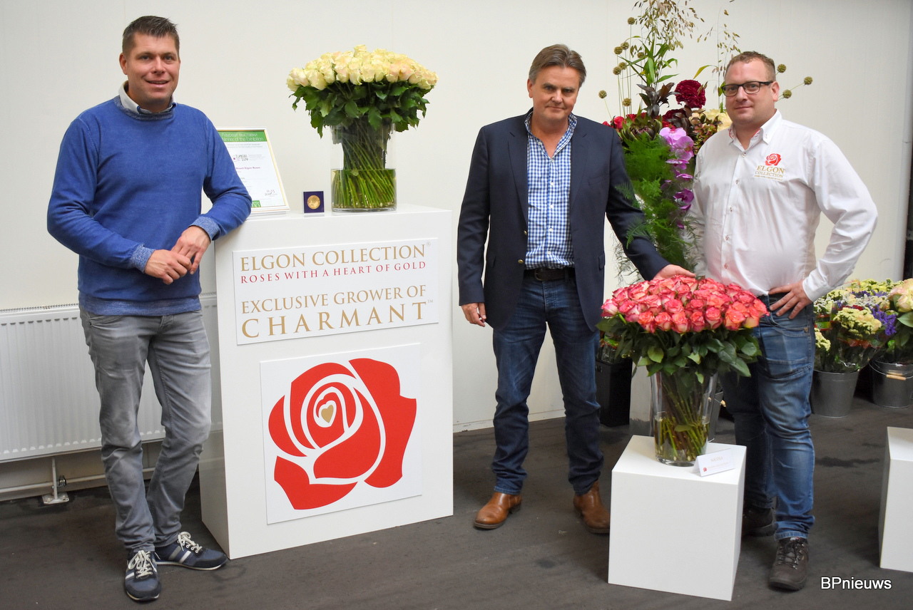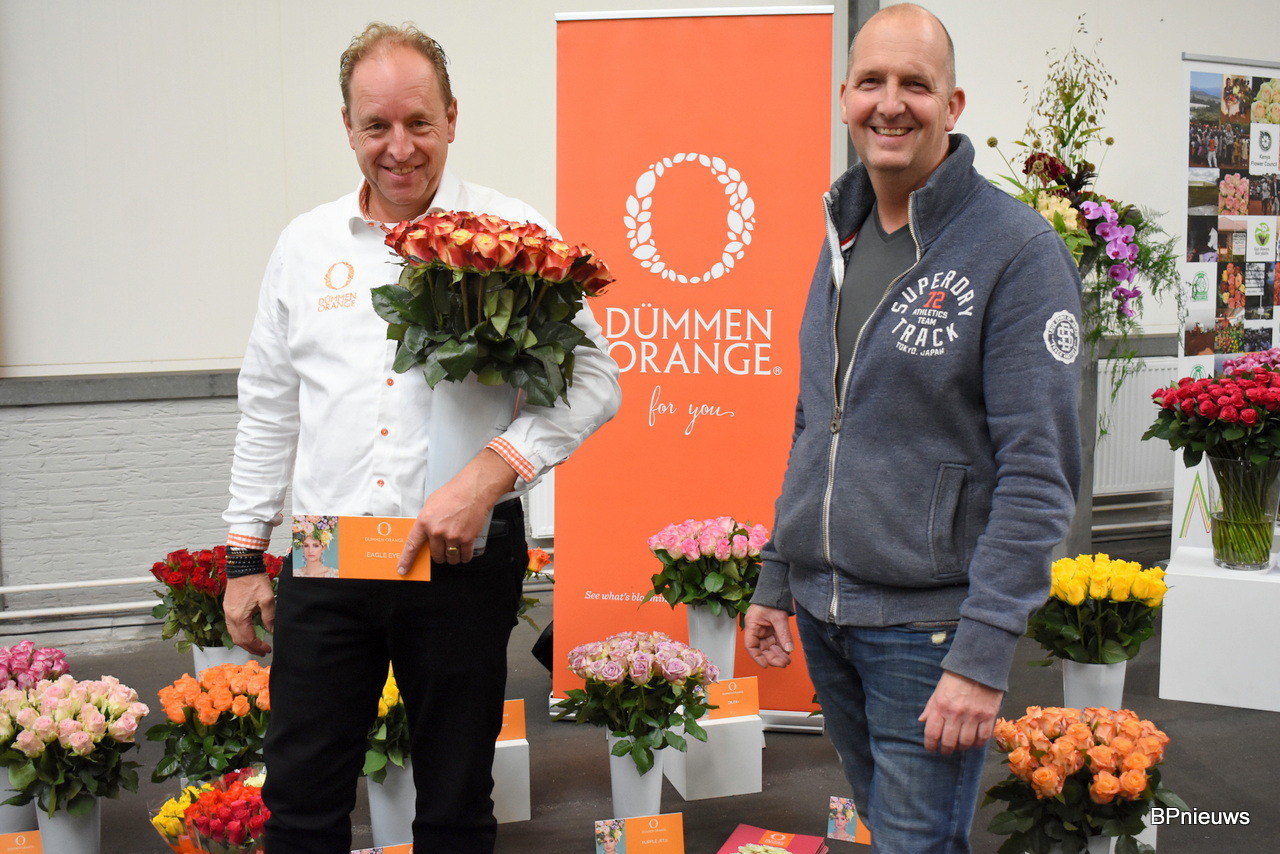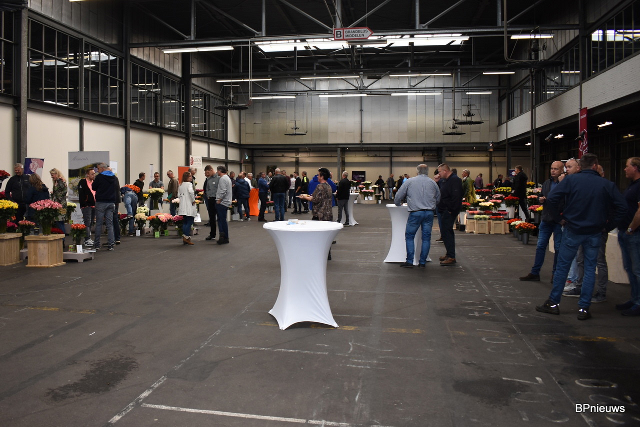 De mannen van De Ruiter Örjan Hulshof en Walter Kammeraad met in het midden Wim Hendrikse van Rosalink. Örjan hoopte hier vooral de lijnrijders te spreken. Goede houdbaarheid, niet te lange stelen, goede transport eigenschappen en een mooi uniform product is daarom belangrijk.