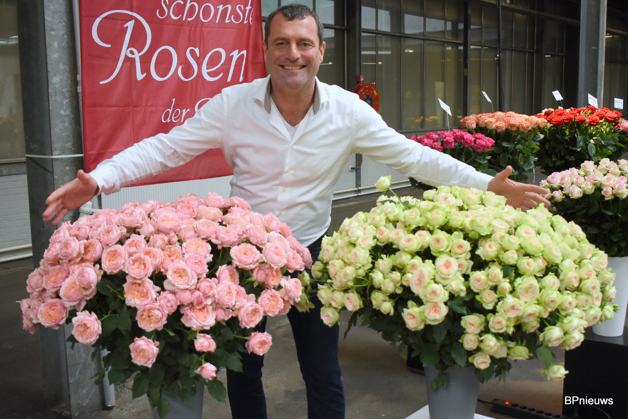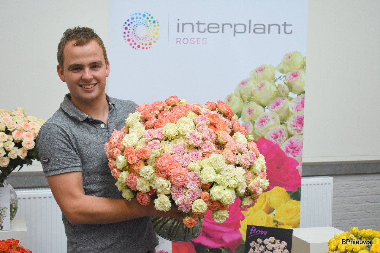 Jeroen van Hemert van Interplant Roses met zijn Flow Flowers. Het concept word leuk opgepikt door de markt. Het is weer eens wat anders in de garden shake roses, vertelt Jeroen.