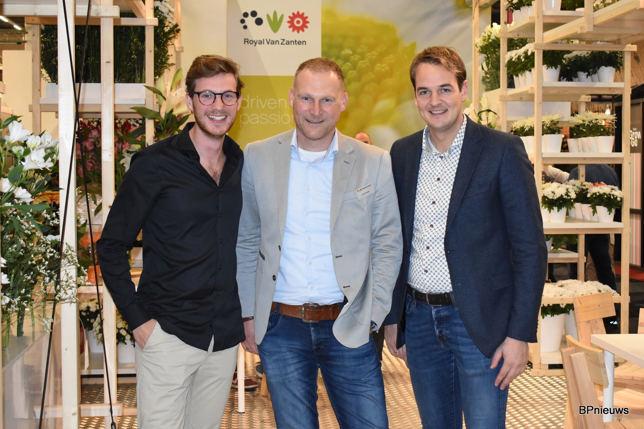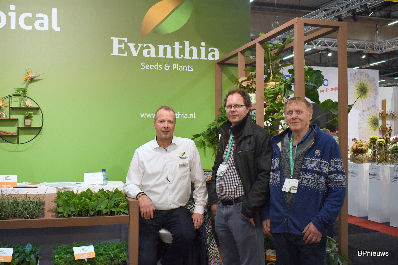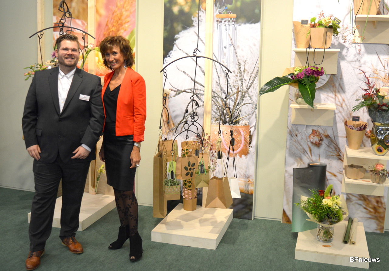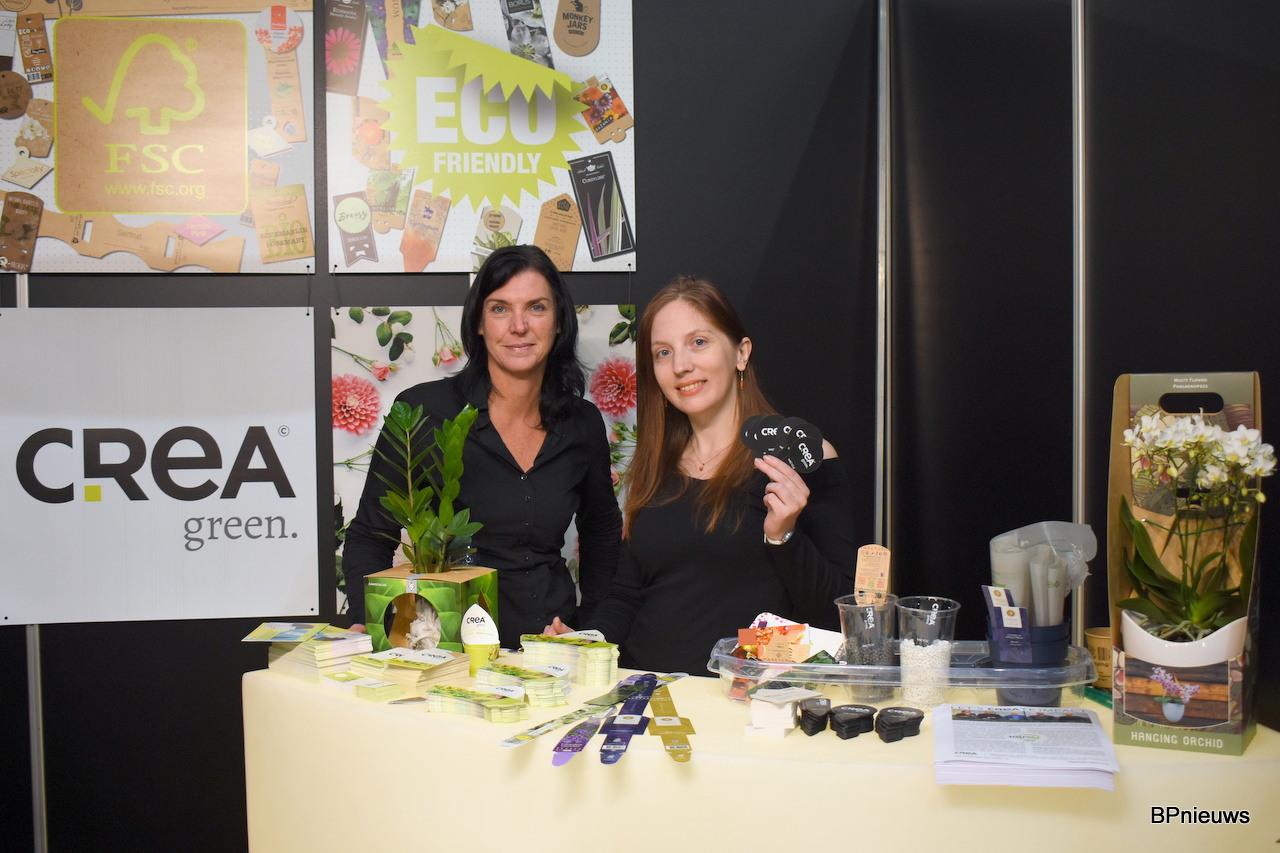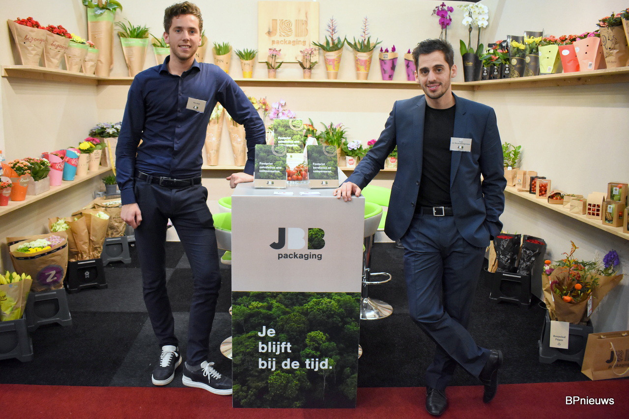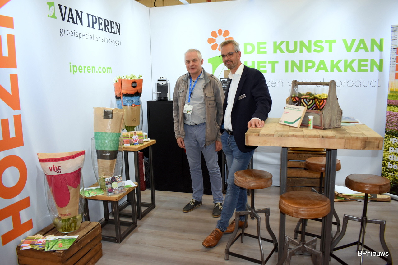 Ook bij de Bruin Plantpot zijn ze bezig met duurzaamheid en dat lieten ze zien door middel van hun nieuwe pulp-tray. Everard de Bruin met de gloednieuwe 8 gaats pulptray. Het is een echte combi tray verteld Everard en door de flexibele klembogen,die in de gaten gevestigd zijn, kun je potten van maat 12 t/m 14 samen in één tray zetten. In het midden staat Gerard van Doeburg met de Lingepot en rechts Ted Verbraeken met hun Terracotta en Olijfgroene potten.